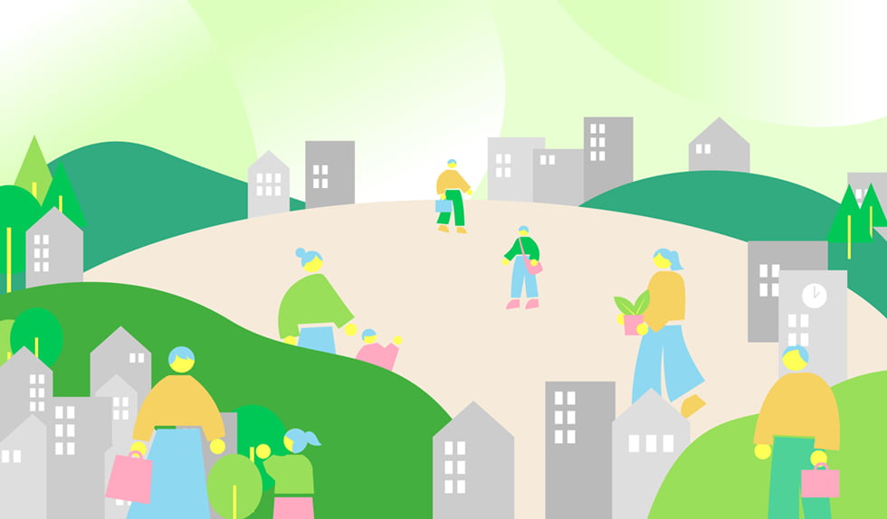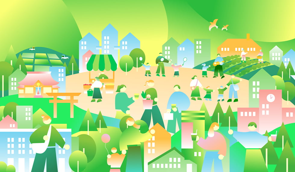 私たちは、自然環境だけでなく、生活環境も含めたウェルビーイングを実現するために、事業領域の幅をさらに広げ、これまで培ってきた技術力と提案力を「環境緑化サービス」へと高めていきます。自然が有する多面的効果をさまざまな社会課題の解決に活用するグリーンインフラの普及と実践を通じて、豊かな未来づくりに取り組みます。