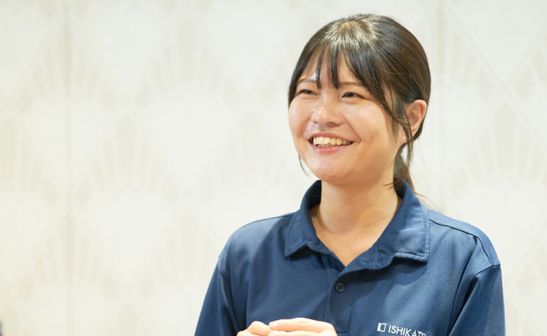 そんな想いのもとでさまざまな企業を調べた末、残った選択肢はこの石勝エクステリア一択でした。実際に参加した会社説明会で「ふわりと柔らか」な従業員の方々の人柄や組織の雰囲気に触れられたことも後押しとなり、「この会社しかない」と入社を決めました。
