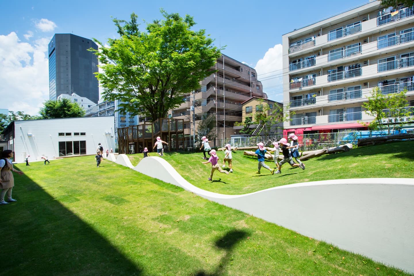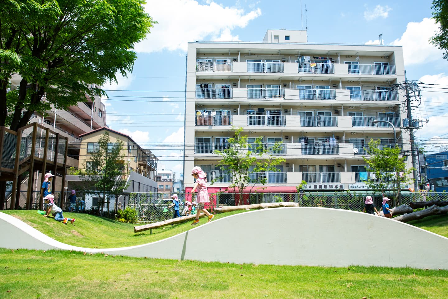 ナーサリールームベリーベアー深川冬木 2017年 東京都江東区 積水ハウス株式会社 #2010年代 #公共施設 #気候変動 #造園建設 #関東 保育所の随所に果実のなる木を配置し、園庭には既存樹のケヤキを囲むようにツリーハウスを設置しています。子どもたちが植物と触れ合える環境づくりをめざしました。