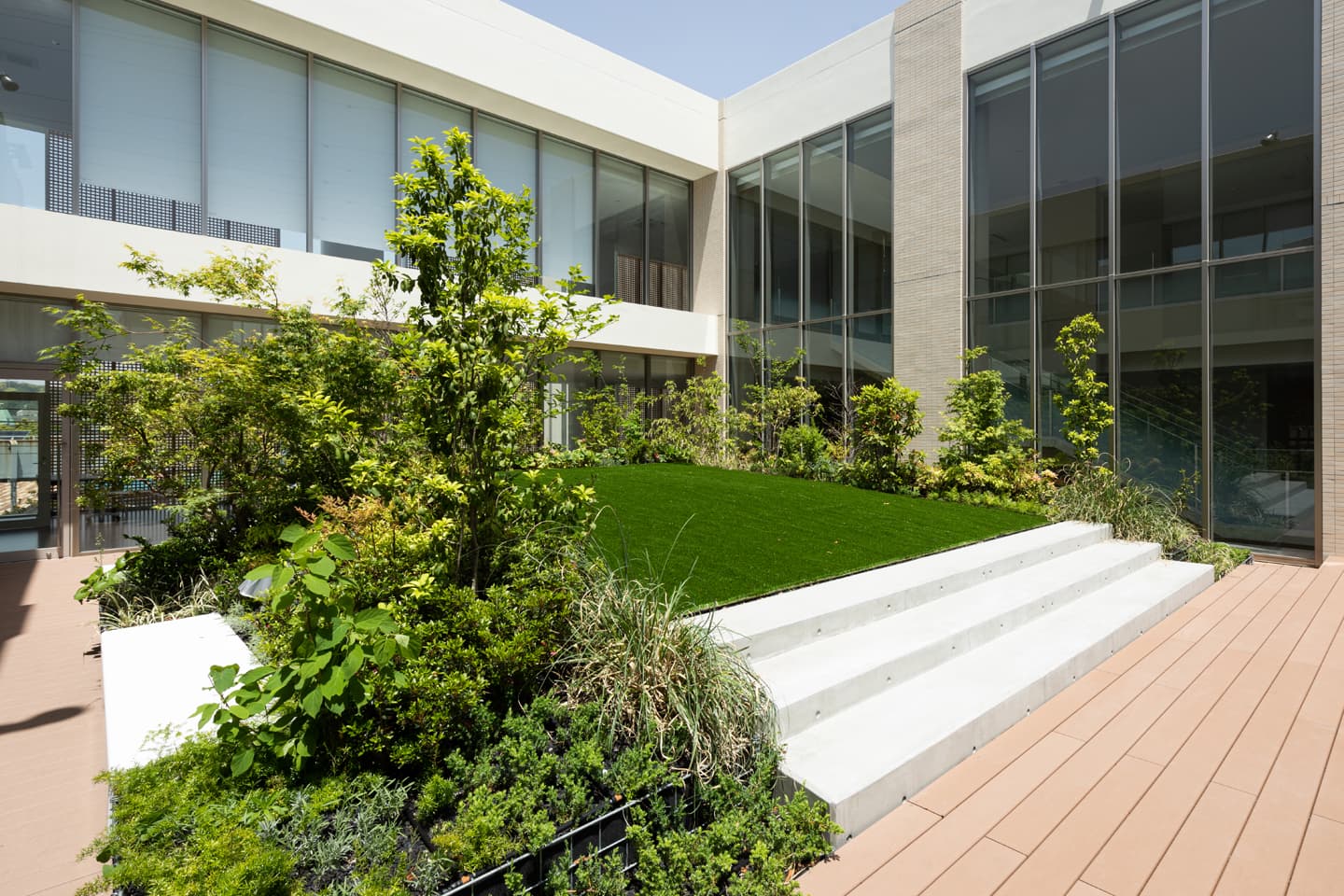 湘南鎌倉医療大学 2020年 神奈川県鎌倉市 学校法人徳洲会 湘南鎌倉医療大学 #2020年代 #公共施設 #気候変動 #造園建設 #関東 周辺環境に育まれ、地域とつながるみどりのなかの静謐な学びの場としてのランドスケープを創出しています。スケールの大らかさと庭のディテールが綾なす空間をめざしました。 写真:井田宗秀
