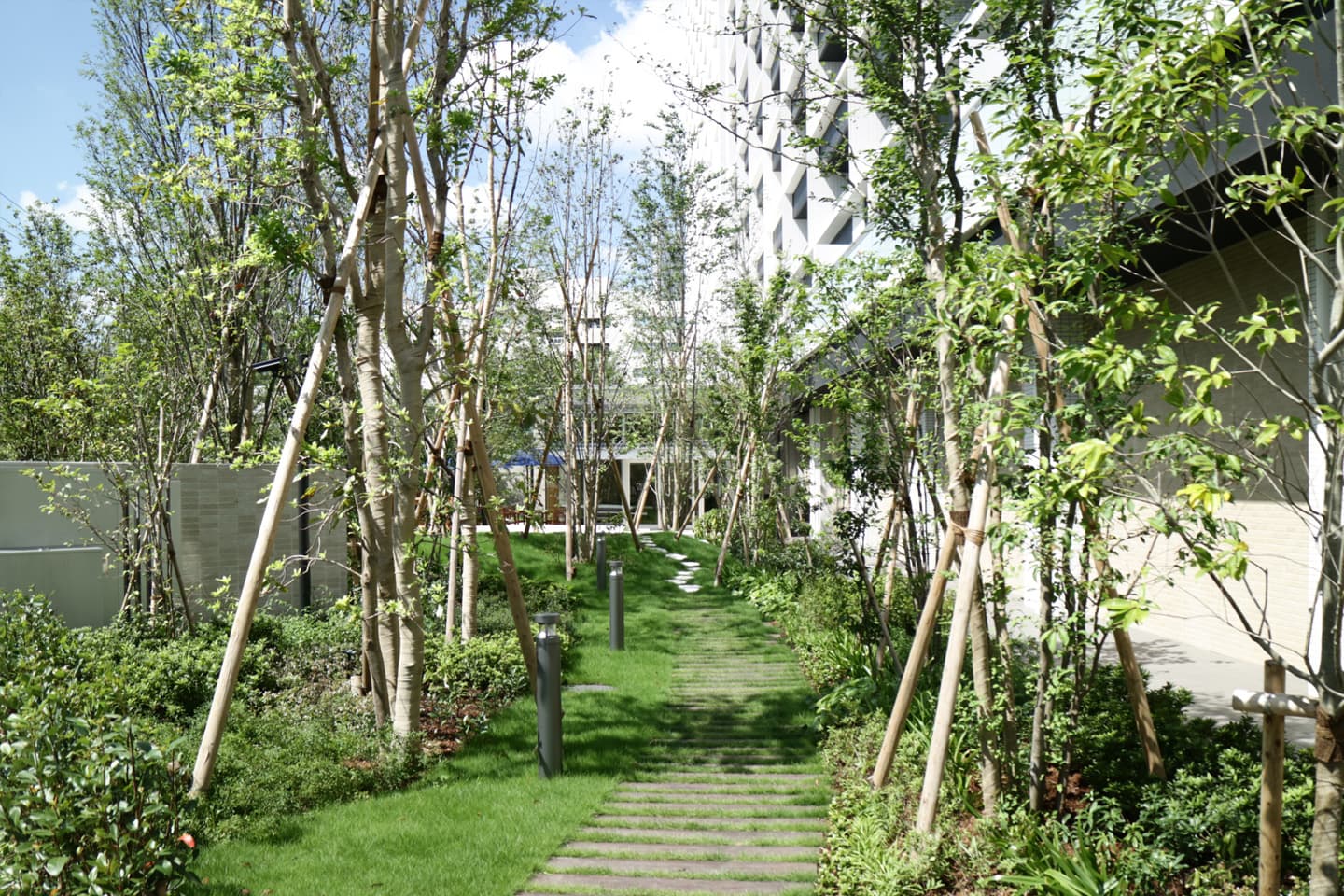ブランズシティ品川勝島 2015年 東京都品川区 東急不動産株式会社 #2010年代 #Greentect #マンション #受賞作品 #気候変動 #生物多様性 #造園建設 #関東 品川区「みどりの顕彰制度」 緑化賞(2017年) 居住者や周辺地域とシェアするガーデン 計画の際に周辺地域の生態系調査を実施し、周辺の生きものが好む樹種を選定しました。 生きものに配慮することで、在来種の採用や高木~低木~草本層を取り入れた階層性のある植栽を施しています。