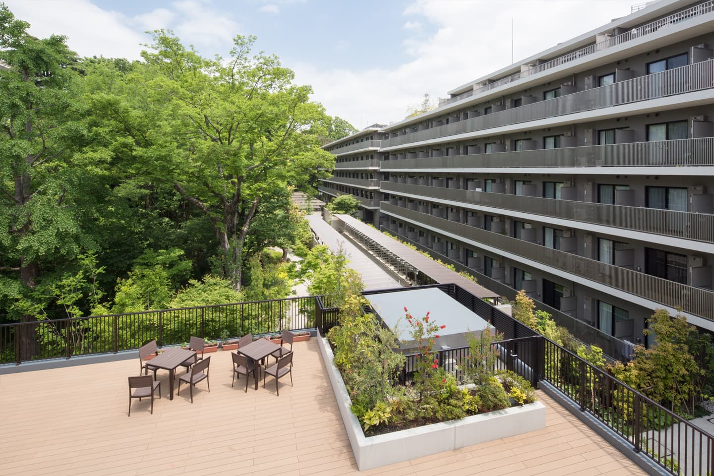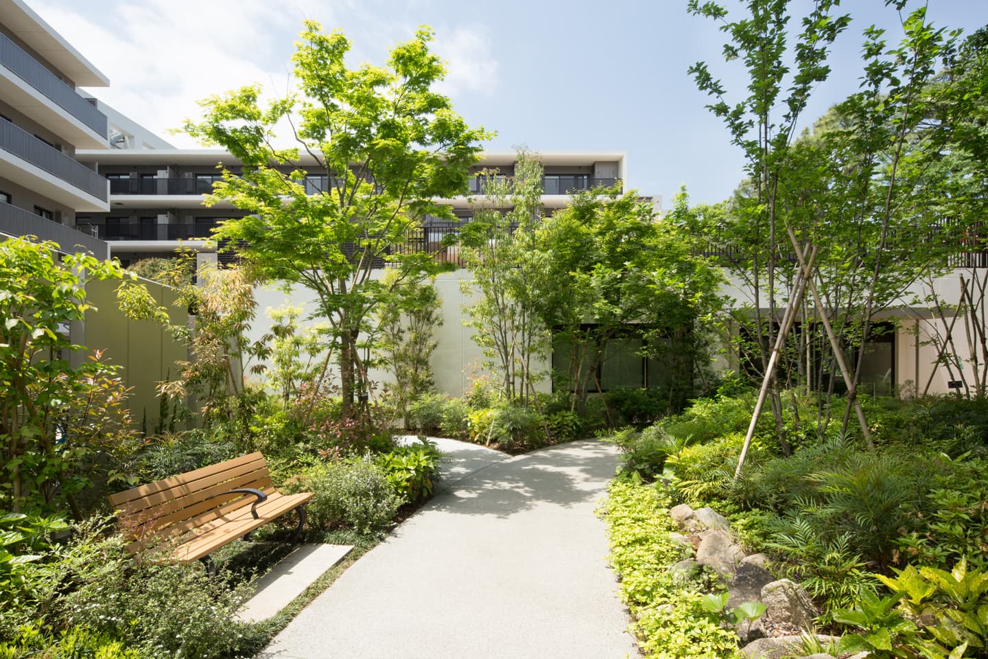 プライムメゾン江古田の杜 2018年 東京都中野区 積水ハウス株式会社 #2010年代 #Greentect #ウェルビーイング #マンション #気候変動 #生物多様性 #造園建設 #関東 多世代が集うみどりに包まれた居住環境づくり さまざまな世代が住まう場として季節変化と落ち着きが感じられるようなランドスケープとしました。 TPM工法により既存樹木を移植し、周辺のみどりと連続した杜づくりと風格が感じられる初期景観づくりをめざしました。 写真:大塚敬太